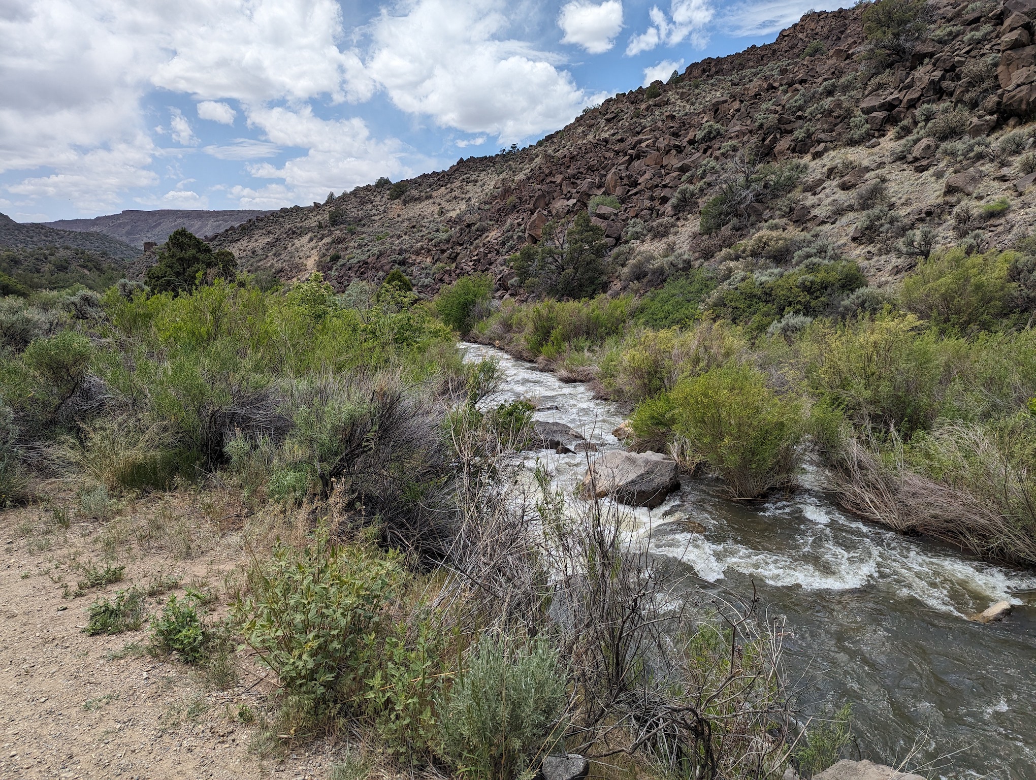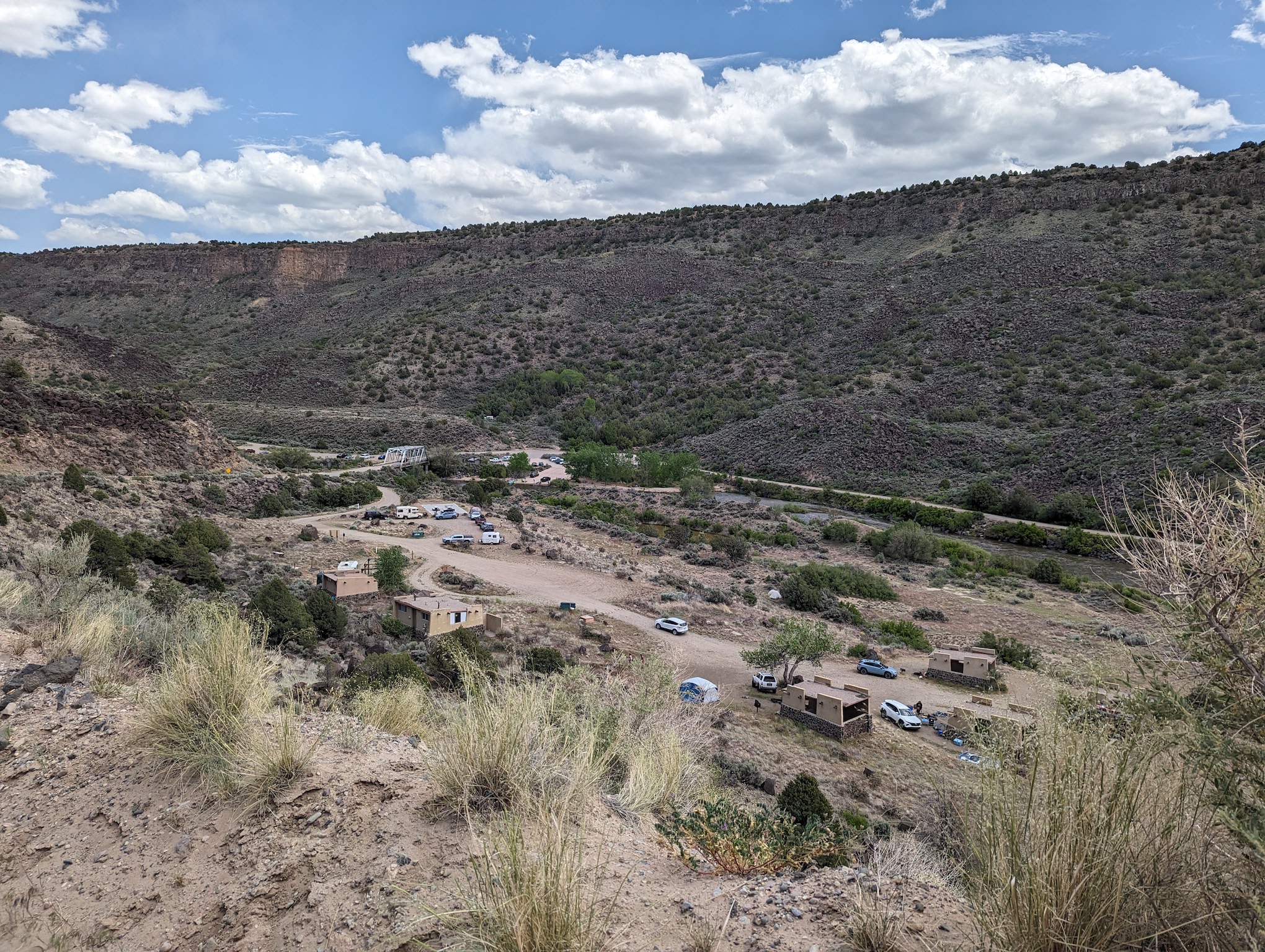 The campsite was nicely located but thanks to the nearly cloudless sky and lack of shade structure, we both left Sunday after lunch. Had there been a shelter in the group site, it would have made it a lot easier to stick around and hang out. The location for starting a float was really nice though. It was a quick walk down across the Taos Junction bridge and you were at the boat launch.