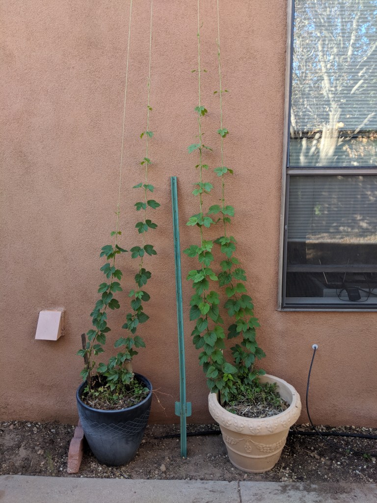 Hops are very thirsty and you need to make sure they stay well watered in Santa Fe since we don’t see much natural precipitation. Setting your hops up on a drip system is ideal.